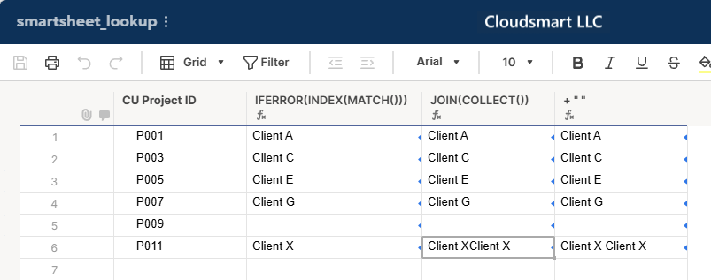 INDEX({ahmne.client}, MATCH([CU Project ID]@row, {ahmne.cuprojectid}, 0)),