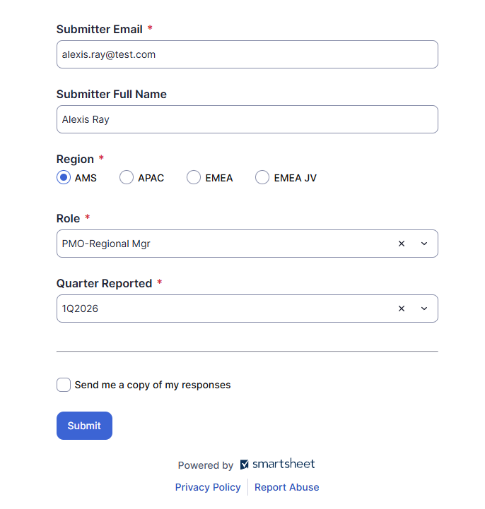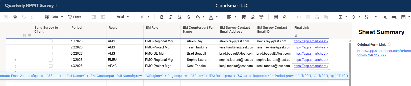 Quarterly RPMT Survey - Smartsheet.com (You can open this published demo sheet to see the pre-population.)