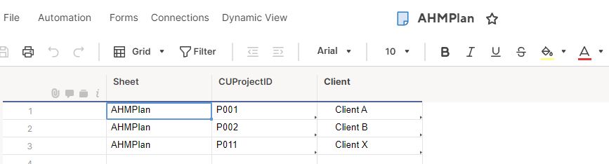 INDEX({AHM.Client}, MATCH([CU Project ID]@row, {AHMPlan.CUProjectID}, 0)),