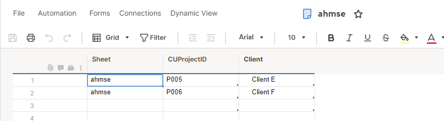 INDEX({ahmse.client}, MATCH([CU Project ID]@row, {ahmse.cuprojectid}, 0)),