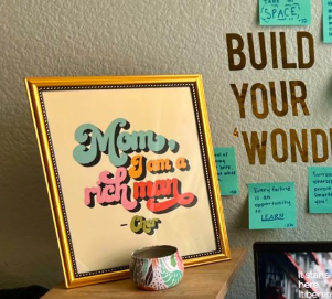 My favorite piece of Decor! A quote from one of Cher's 1995 interviews where she talks about how her mom would always say "I wish you would hurry and settle down and find a rich man." She then replies, "Mom, I am a rich man!"