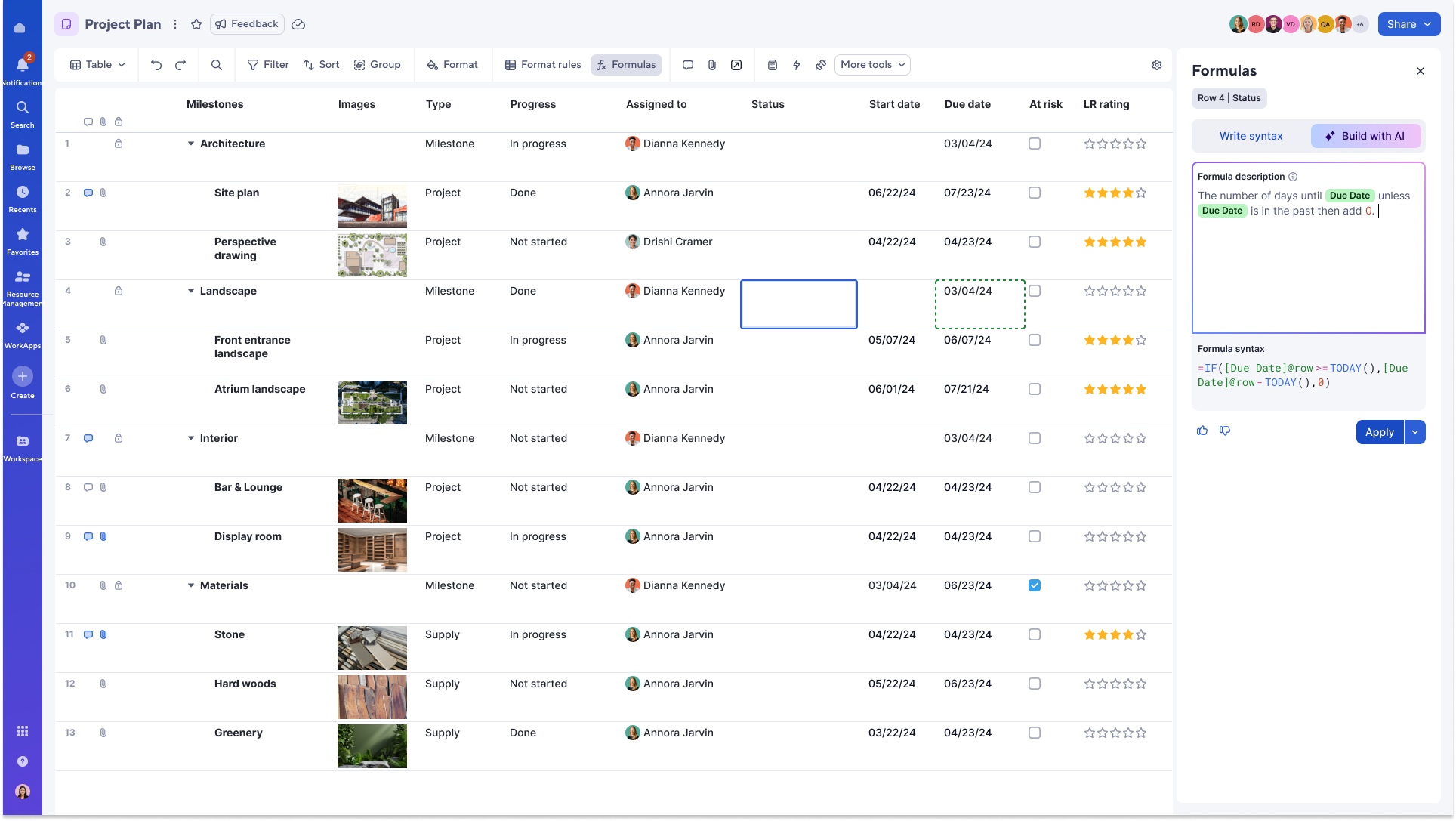 Generate formulas is now available for customers using the Smartsheet AU environment in Table view. This AI tool enables you to quickly create working formulas in the formula panel using AI, without needing to master complex functions or syntax. Simply describe what you want the formula to do in plain language, and AI will generate it for you—complete with column references—right in your sheet.