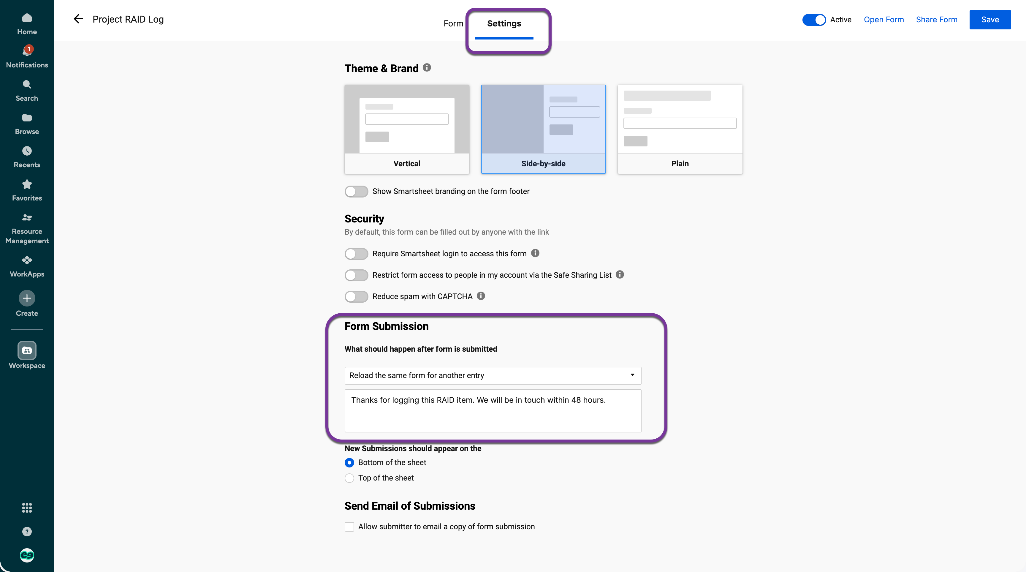 - To add a new item, we use forms. I put those on a Dashboard with a view of the sheet/report (or just share the link with users directly). Then they just click the '+ New' button; this opens an easy to use form.