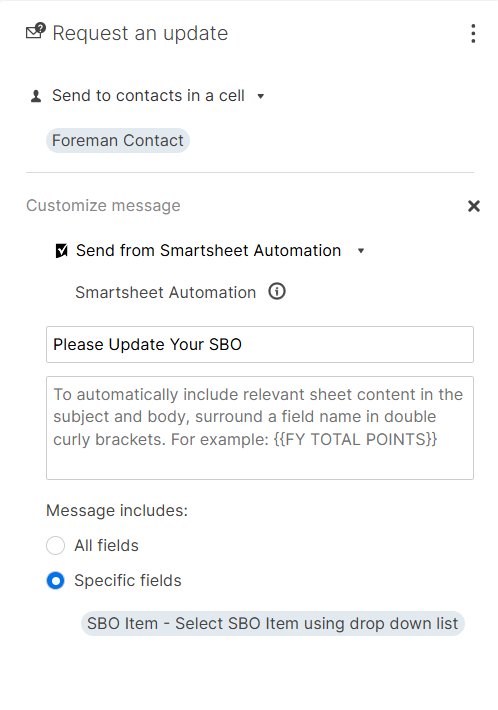 - Send Update Request to the contact in the “Foreman Contact” column