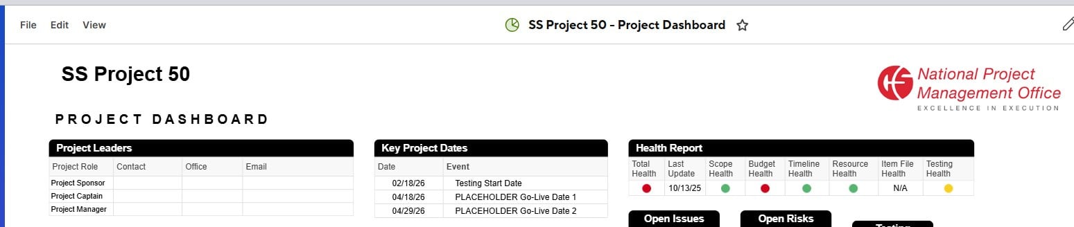 Dashboard titles are always visible (frozen) at the top of dashboards, except in presentation view. We have received requests to ensure that the name of the project and the project overview are always visible at the top. Our idea is for Smartsheet to create a "header" using the first x rows of graph paper, or to create a widget setting to "anchor in presentation mode" so that certain key widgets are always visible, even as you scroll. Another idea is to make the title of the dashboard formattable (color, size, underline, etc.).