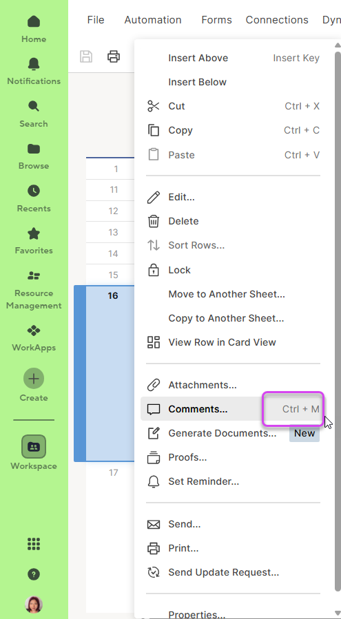 I submit ticket to Smartsheet support – they told me that’s expected behavior because it’s not currently available even though it still shows as keyboard shortcut in the menu🙄 and told me to submit new product idea.