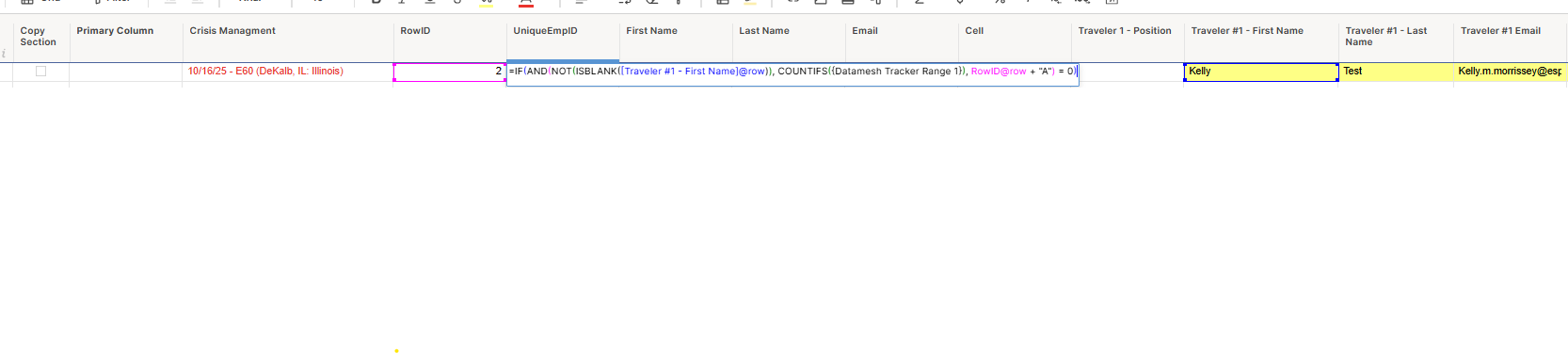 IF(AND(NOT(ISBLANK([Employee Name 3]@row)), COUNTIFS({Final Sheet UniqueEmpID}, RowID@row + "C")=0), RowID@row+"C",