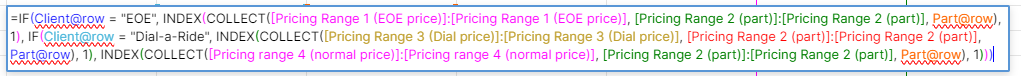 IF (Client=AAA, then vLookup COLUMN_Part from sheet AAAPrice Range, 2, false); else "Nope"