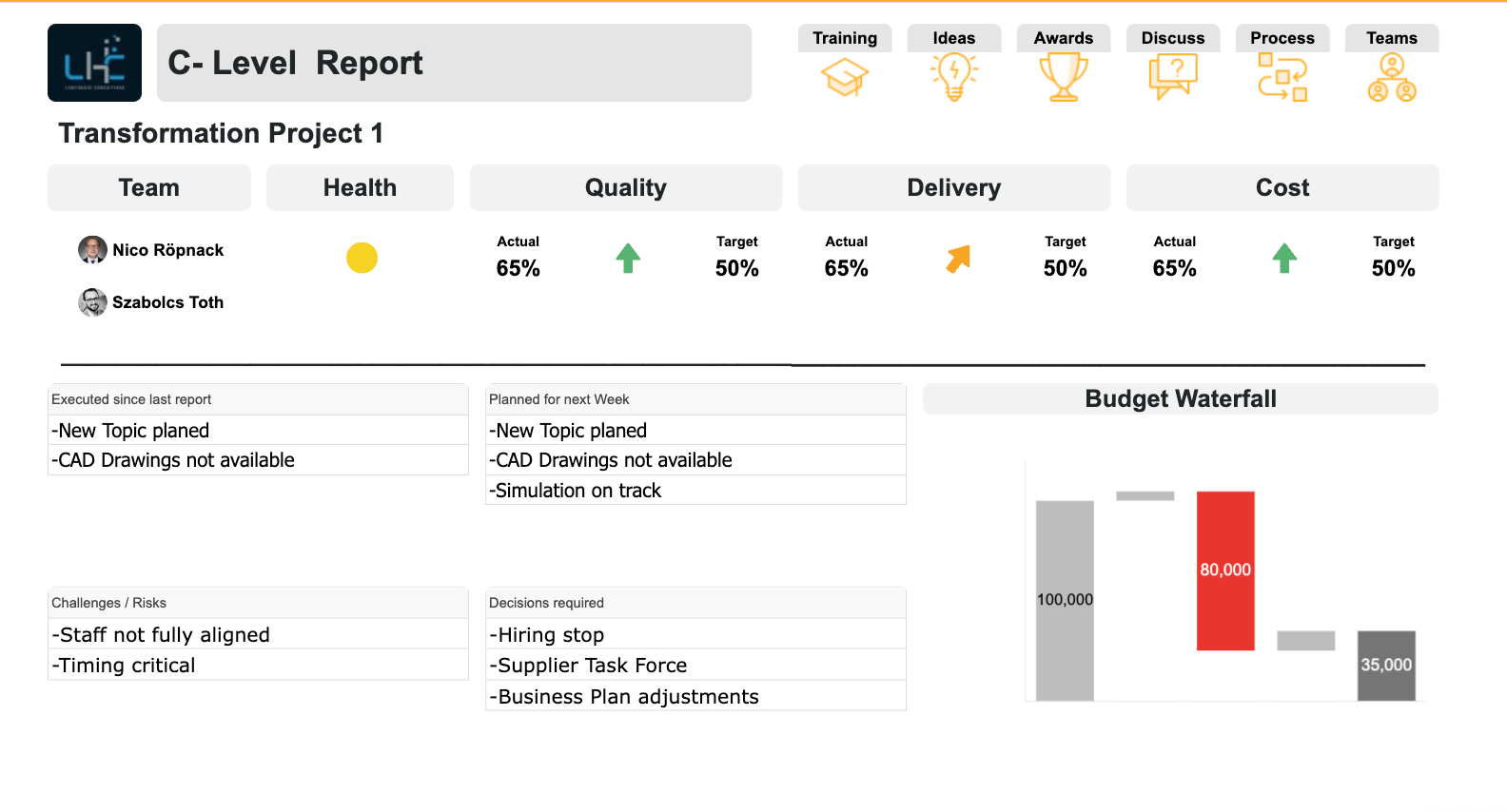 One of my stakeholders is a big fan of visual information, and when viewing a dashboard, has asked for quick, visual way to assess the project health.