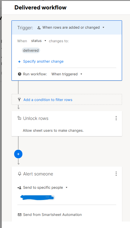 Automation on the Order Form sheet: When the status changes to "delivered," unlock a row, notify someone, and uncheck the Submit box.