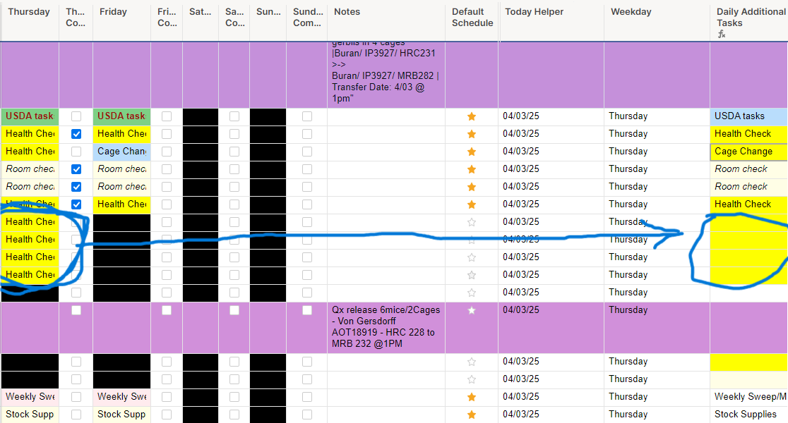 This is the formula in question. It should fill in the Additional assignment column with the assignment for the given day. But it's randomly not filling in the info.