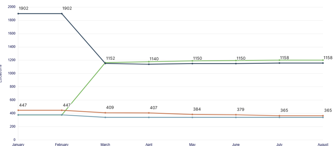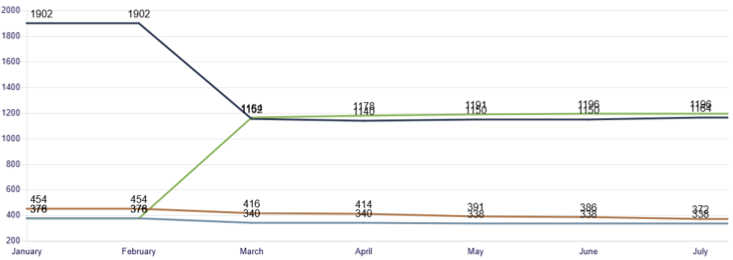 I have this chart in my dashboard, and I'd like to see the value of all the sections of the stacked bar, but the system is not displaying all the numbers.
