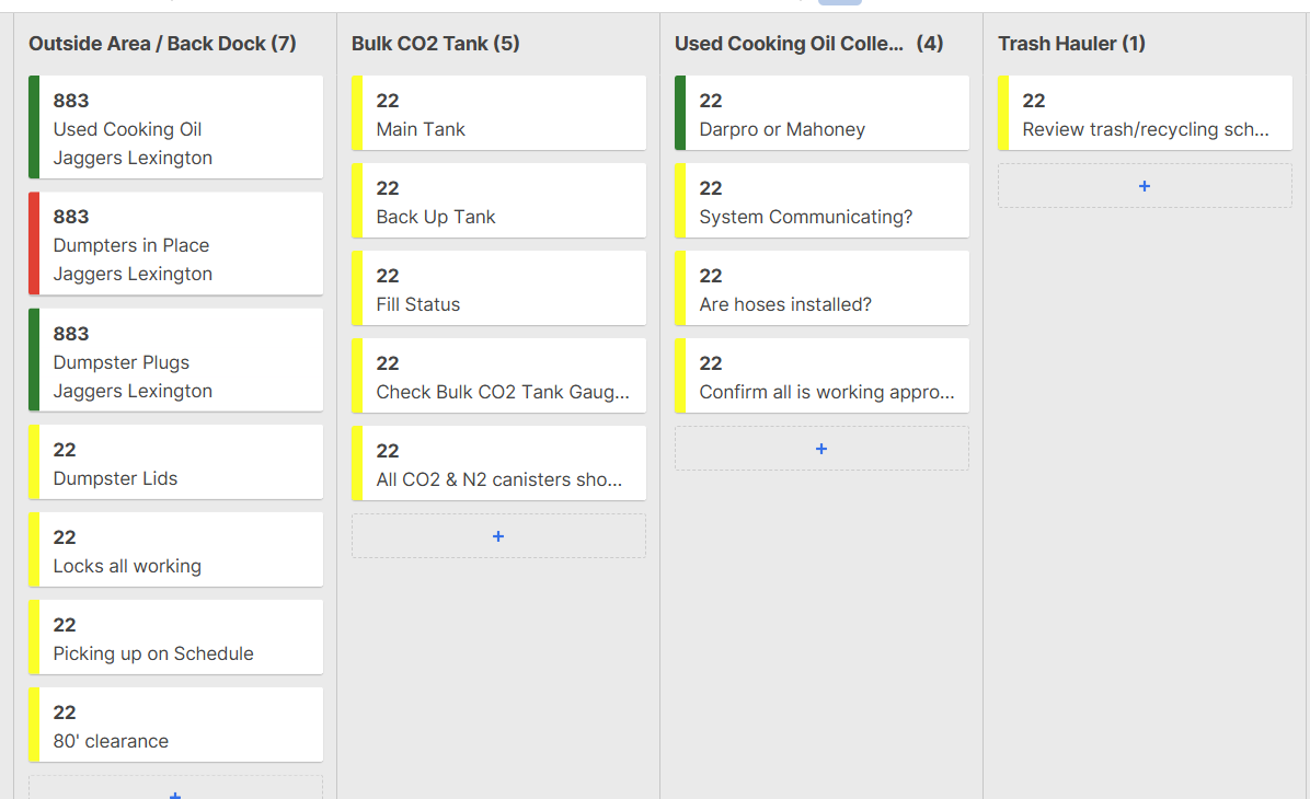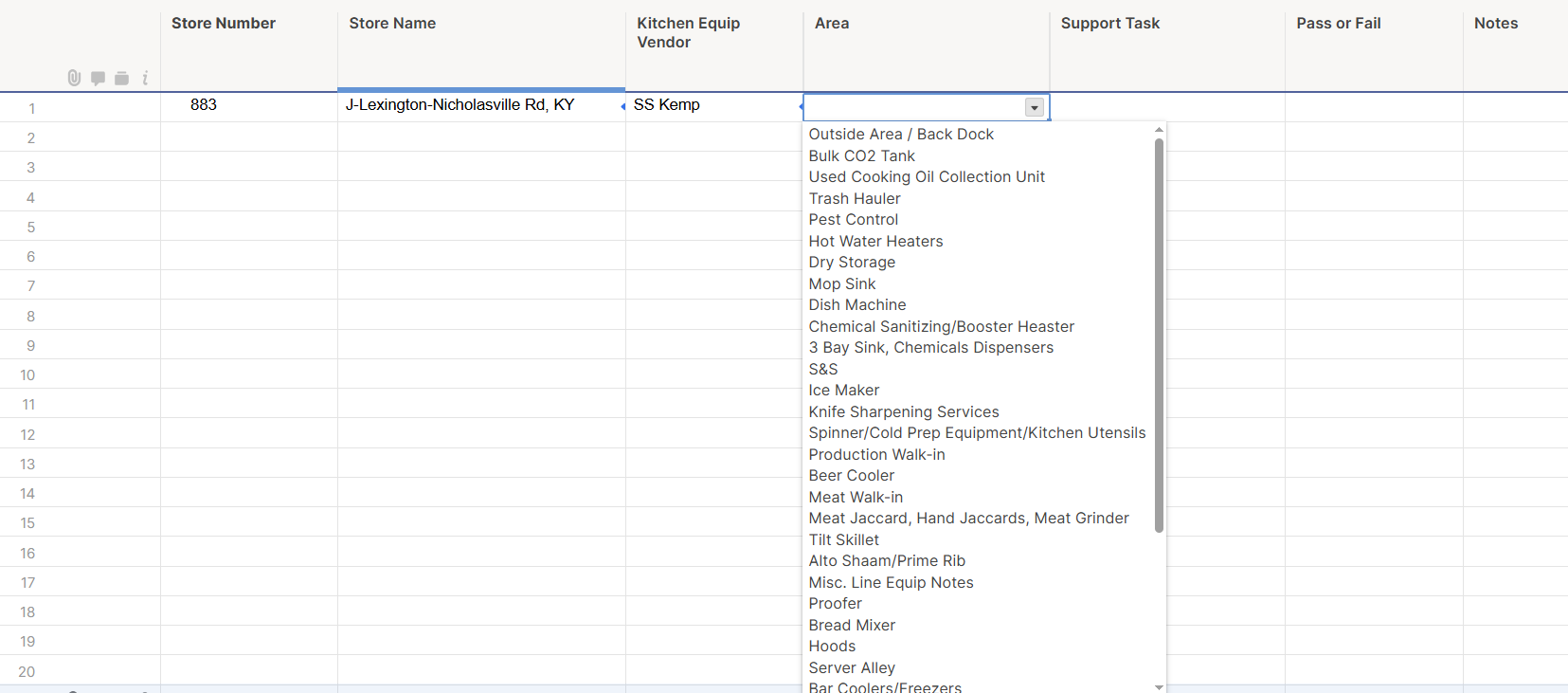 Grid view shows nothing but the info I have index/matched to populate from source data. The Area is the drop down that fuels the card view. But when a card is updated, it doesn't populate the grid.