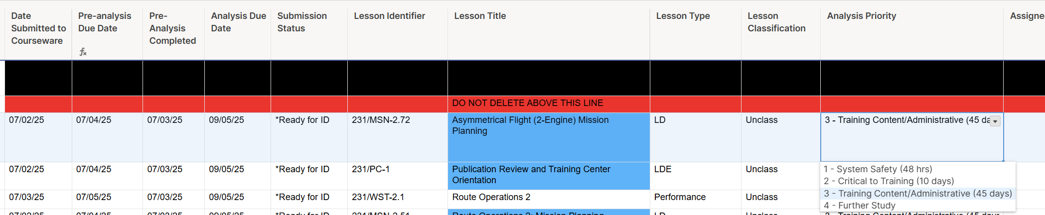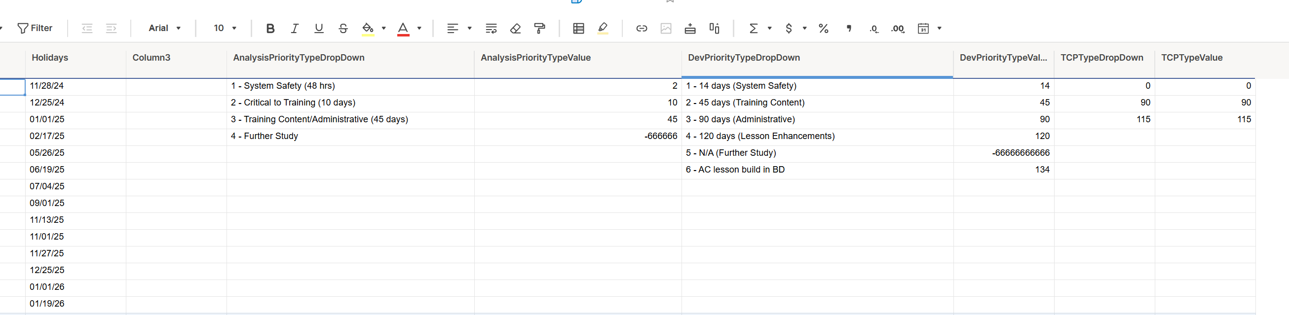 =IFERROR(WORKDAY([Date Submitted to Courseware]@row , VLOOKUP([Analysis Priority]@row , AnalysisPriorityTypeDropDown2:AnalysisPriorityTypeValue5, 2), Holidays4:Holidays46), "")