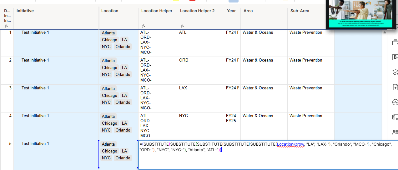Basically, I don't want someone to have to fill out 10 different Initiative intake entries for the same initiative but in 10 different locations. The Master Sheet needs to have them all be separate rows as the Master tracks things like implementation and initiative status, which may be different per location. Is there any way to achieve this?