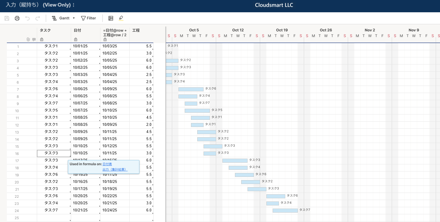 現状は通常のWBS方式でタスクを管理しています。タスクごとに「開始日・終了日・計画工数」を持たせ、稼働したタスクごとに実績工数を日ごとに入力したいと考えています。