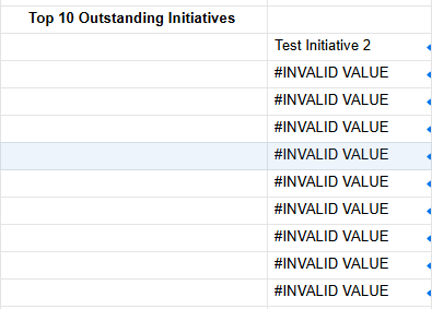 This returns the correct Initiative for the first one, but when I start to move to the next row (change 1 to 2 in the formula above), I get #INVALID VALUE.