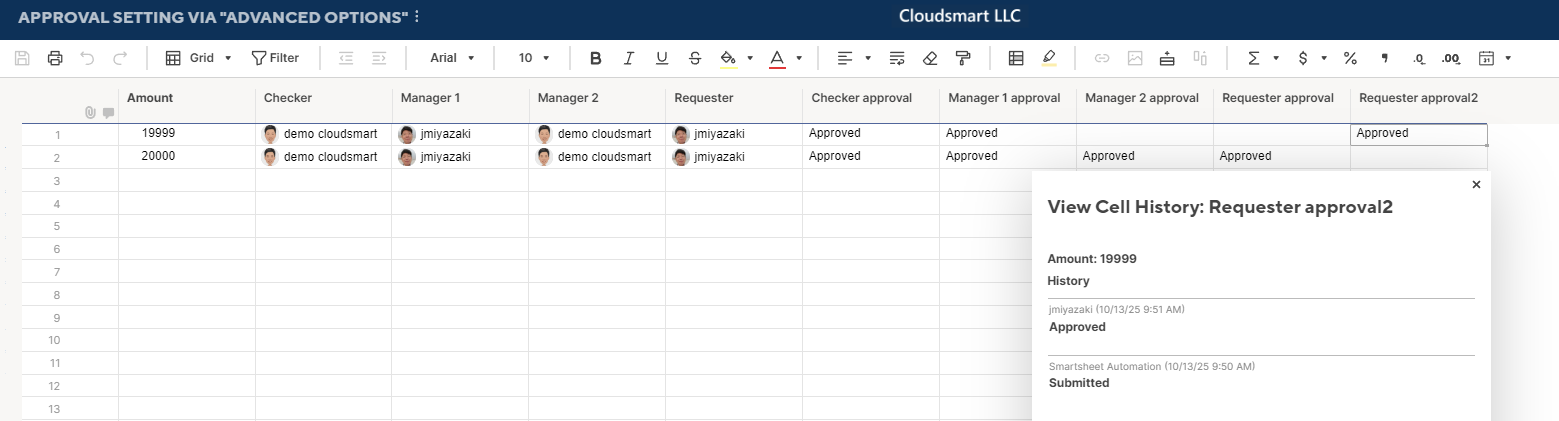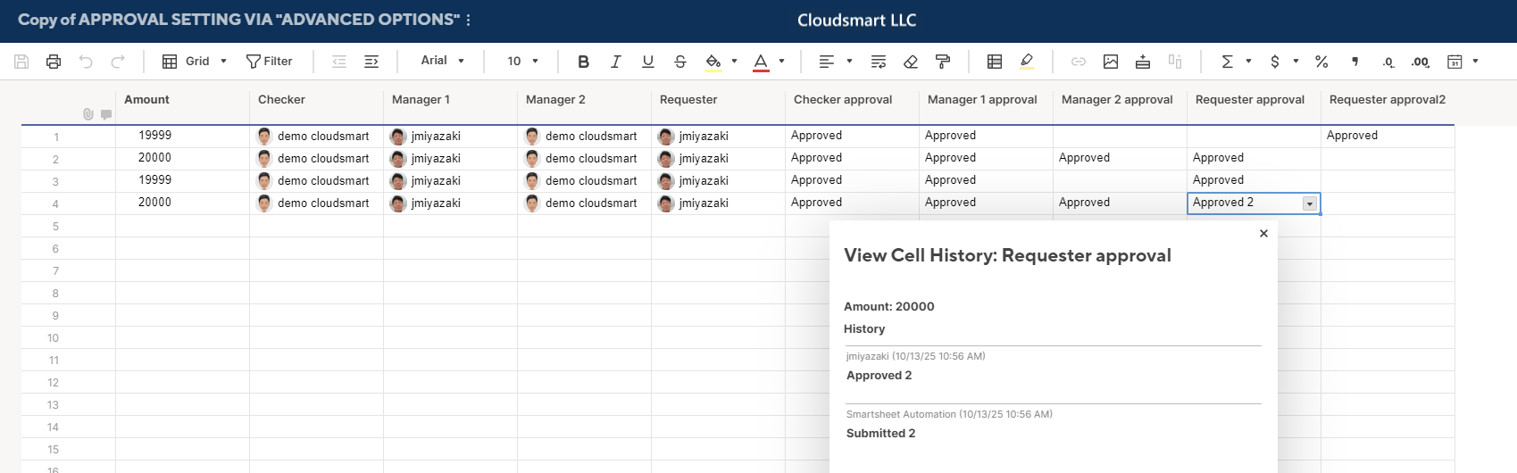 Condition 2 : When amount above 20,000, and Manager 1 Approve and Manager 2 Approve, then Requester can approve