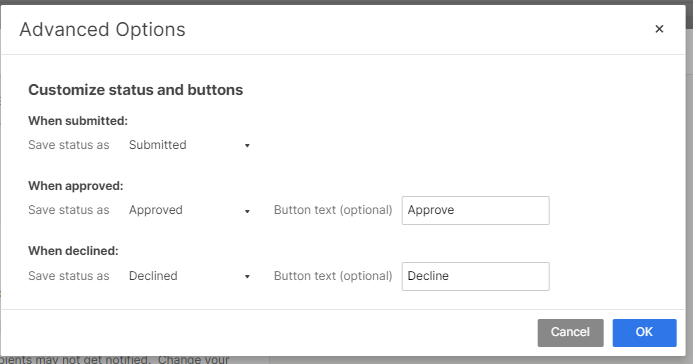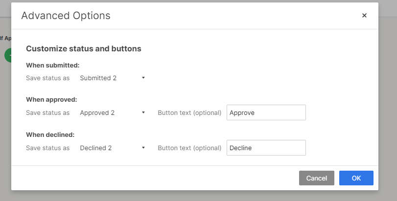 Need you support for the the issue. I was in the process of making an approval workflow for petty cash request, the problem was when i want to combine 2 different confirmation workflow by Requester to be appear in same column (Confirm), but mention notification like in the screenshot attached.