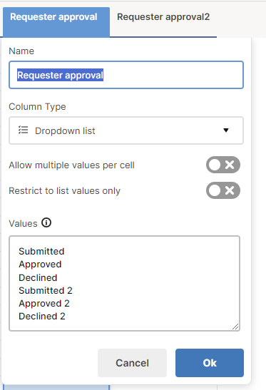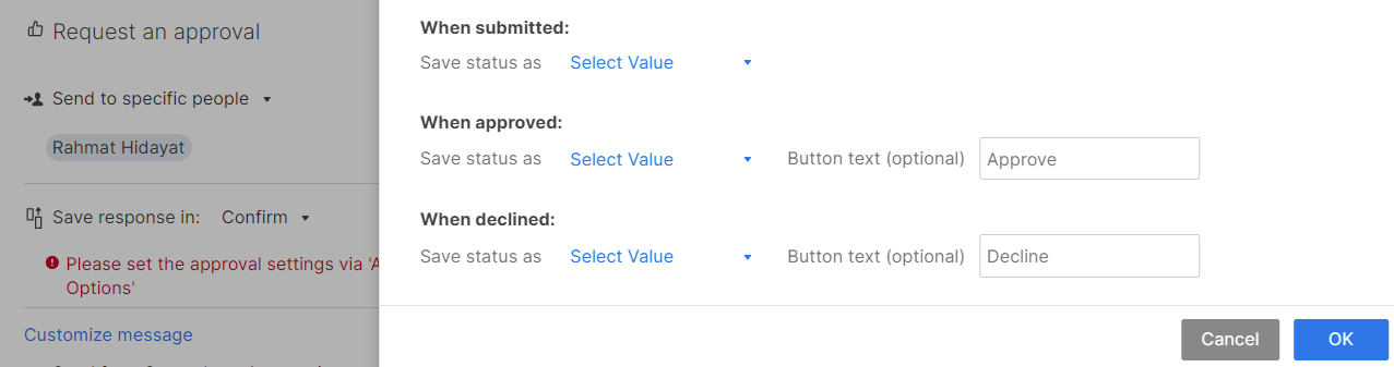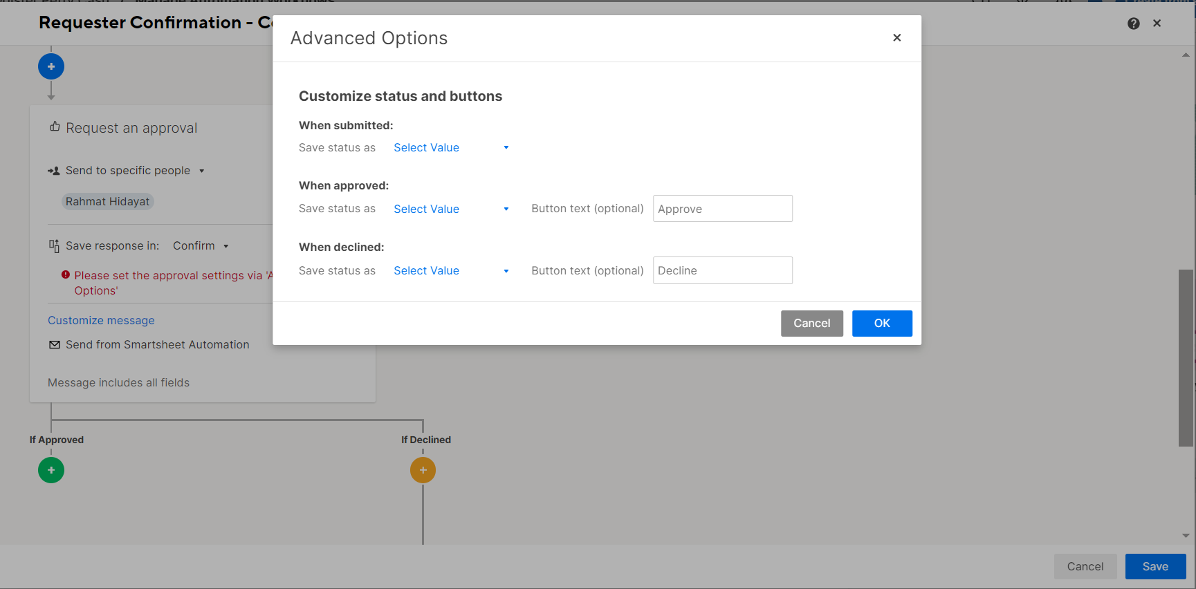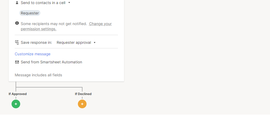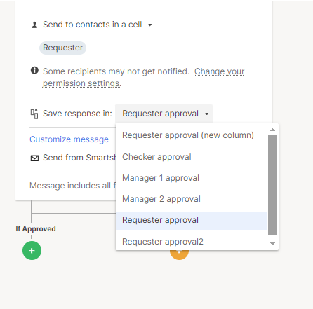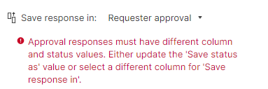As above, I have made separate workflow for Condition 1 and Condition 2 for the Requester approval, but when i want to chose the confirmation to appear in the same column (Confirm), it mention the notification and I don't now what to do.