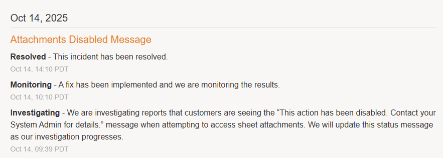 I have an admin-level user who cannot access the workspaces or attachments - a locked display shows. This person can access info on the orange reports, but not on the blue reports. Between yesterday when the user had full access, and today - nothing has changed with settings, permissions or seat roles.