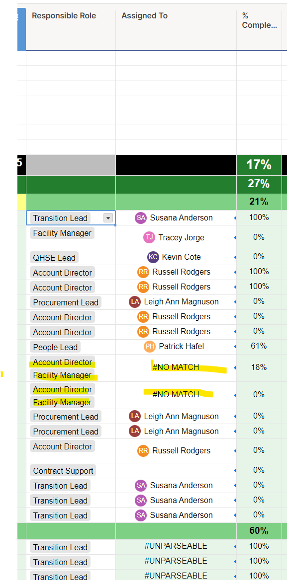 Hi All, I am working on a project plan where I have a drop down that I can select multiple roles to assign a task to. The Vlookup references a contact list of single role, single assigned to. When using a simple vlookup formula, it will give a single answer where there is a single assigned to, but what do I do to make it give me multiple assigned to when multiple roles assigned.