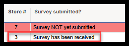 Below screenshot is result. Store #3 IS present in 'List of stores yet to complete survey', however, lookup is indicating that it has been received.