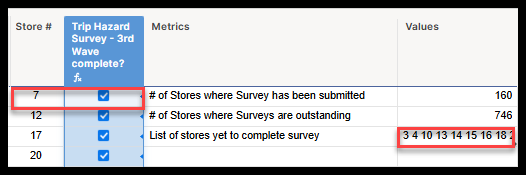 Below is screenshot of worksheet which is identifying which stores have surveys submitted or not.