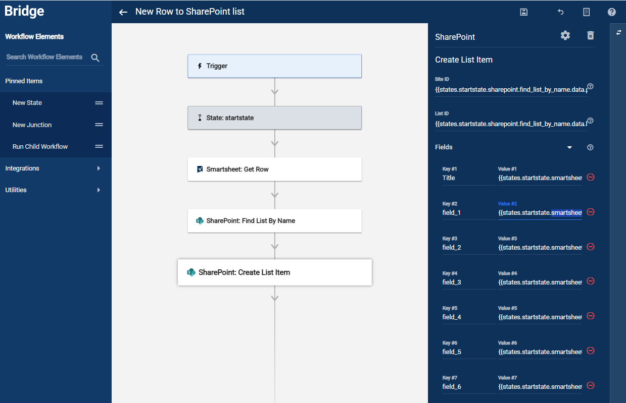 So my "simple" question is how do I set up a Bridge to add data from a new row in Smartsheet to a SharePoint list.