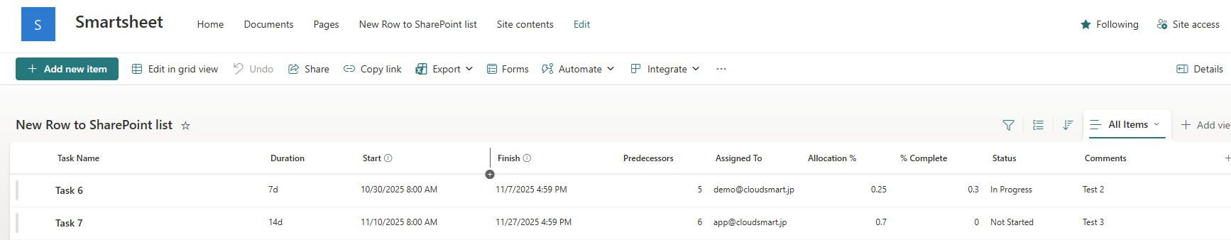 - I do not know Site ID or List ID, so I attempted the two methods suggested on the SharePoint module reference | Smartsheet Learning Center page