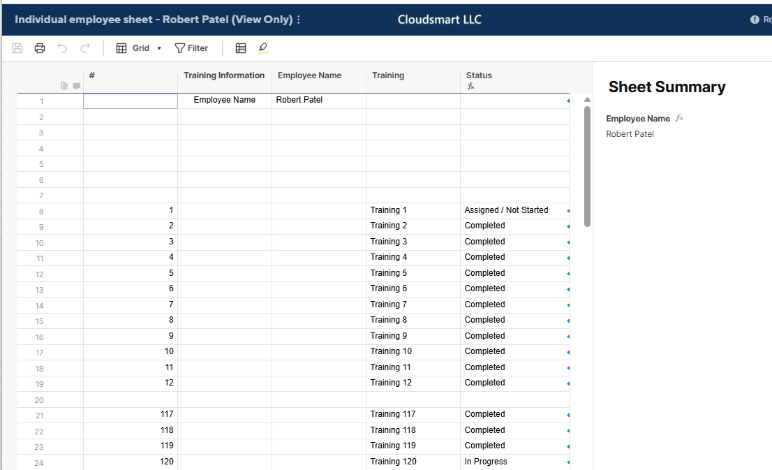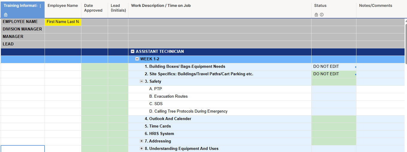 The individual employee sheet allows for the trainer to put Notes/Comments for each training and works well for when the trainer is meeting 1:1.