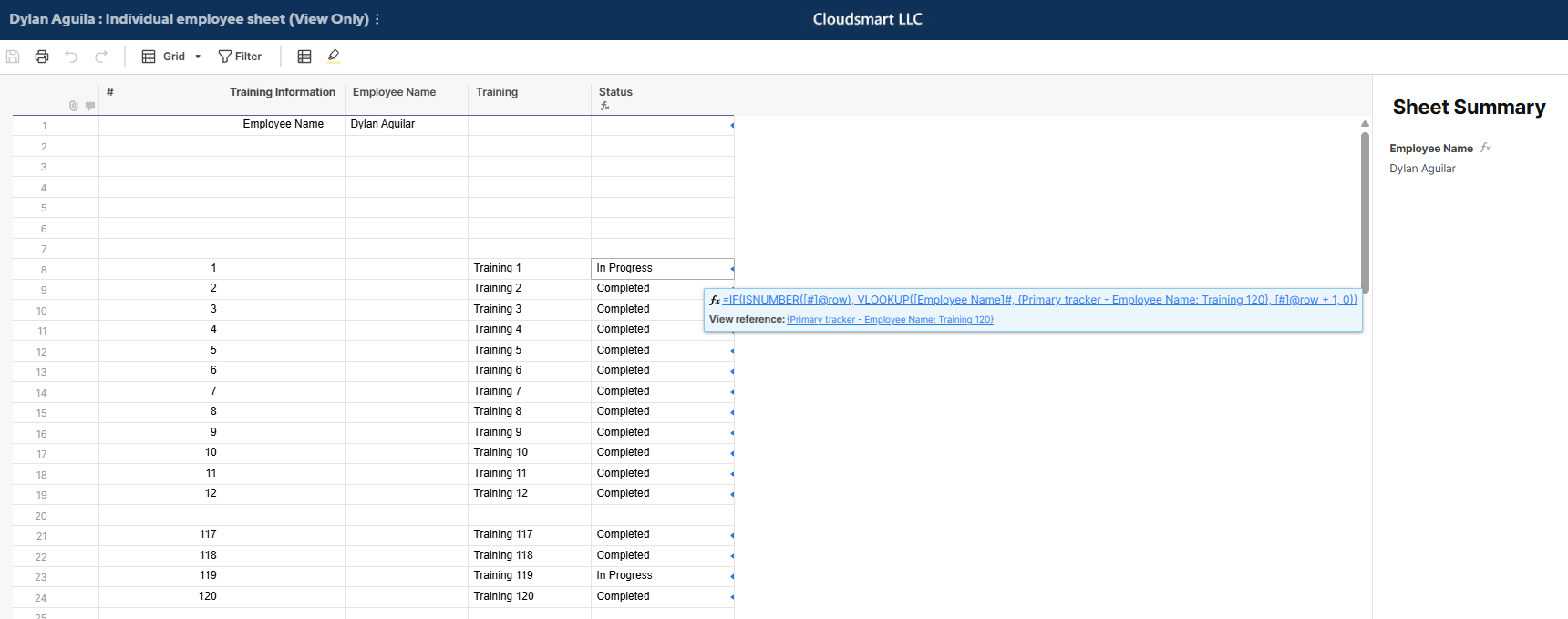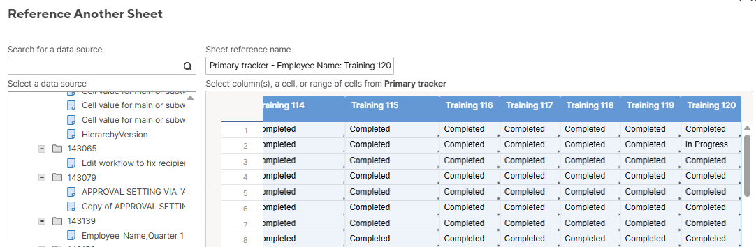 2. It seems like if we were to add new columns to the primary tracker, the links in the Status column will break, which won't work as I'm sure our training will evolve.