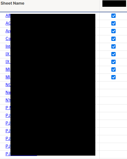 Right now, it's 31 sheets with over 2,500 rows of data (more like 3,000), so grouping them lets me see the count of rows in each sheet, but I can't see the sheet names/links that way… but there is no consistency with text or topics across these sheets - it's just a list of sheets he cares about and wants access to.