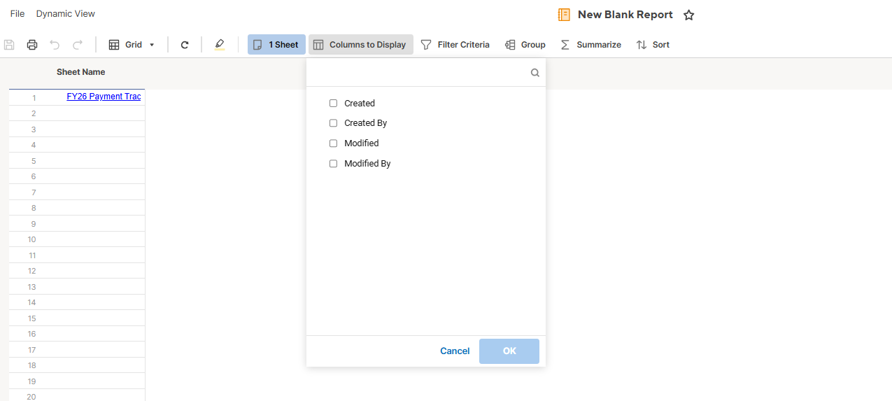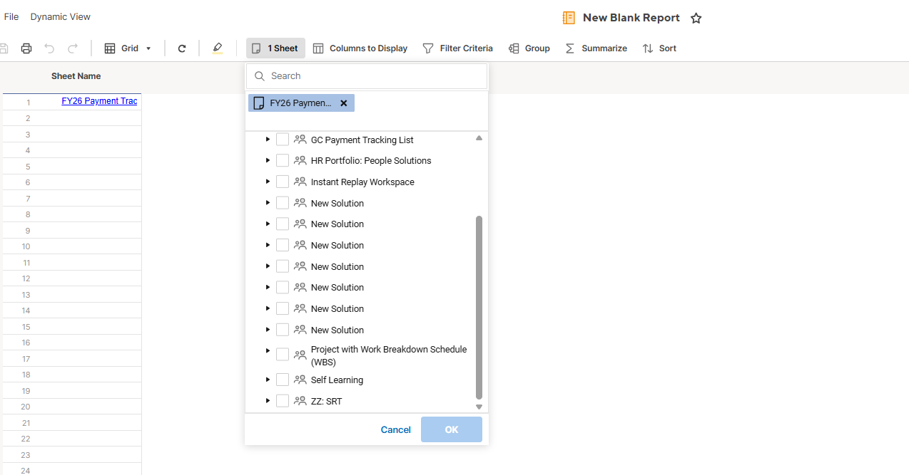 Stupid question about creating report, I open one new report and select one of my create sheet like below screenshot: