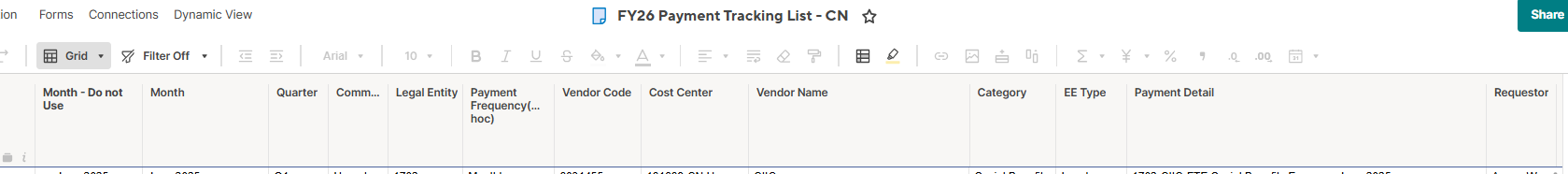 And I want to filter the columns to display, but I cannot select the columns in the original sheet