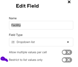 Second question, is there a way to LOCK down fields that are dropdown menus? It appears that users can manually type or copy/paste something into that field.