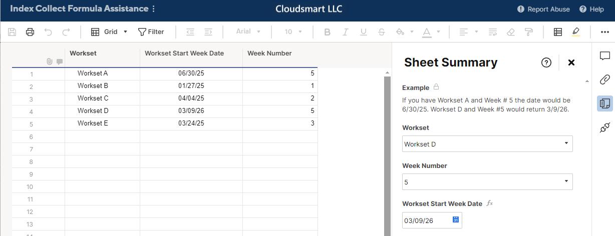 Example: If you have Workset A and Week # 5 the date would be 6/30/25. Workset D and Week #5 would return 3/9/26.