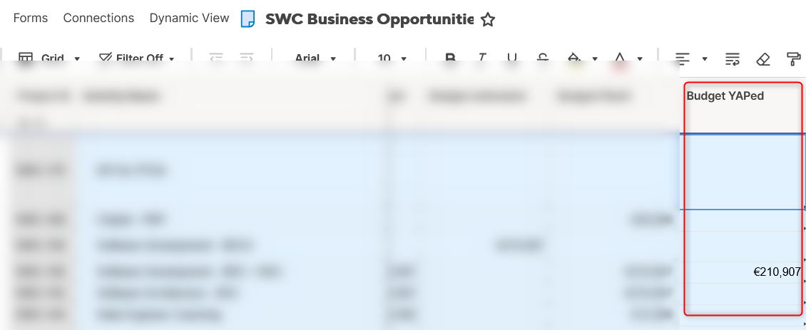 Current situation: I have a sheet with budget data (Budget YAPed column)