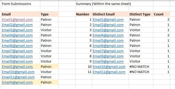 - For the Distinct Type formula to continue to function, even with repeat form users (ie. same email address).