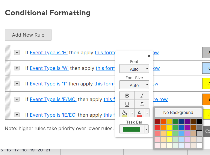I would love to have the ability to make custom colors or use color hex codes in the conditional formatting window.