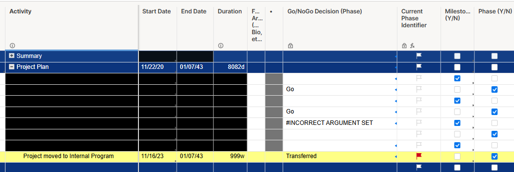 In our project plans, we have a column that show the decision made for a specific phase of development. The are Go, NoGo, Transferred and Terminated decisions. I have recently added the Transferred decision. These decisions are driven by multiple factors in the sheet. If a project is Transferred or Terminated, it will always be the last phase reported in the project plan. I cannot get the "Transferred" to work, which I think is the result of incorrect parenthesis in a nested IF statement - but I have stared at this for quite a while and can't see the problem. The last part of the statement drives the Go and NoGo decisions via a Index Collect from a reference sheet. Thanks for any help. The formula is below