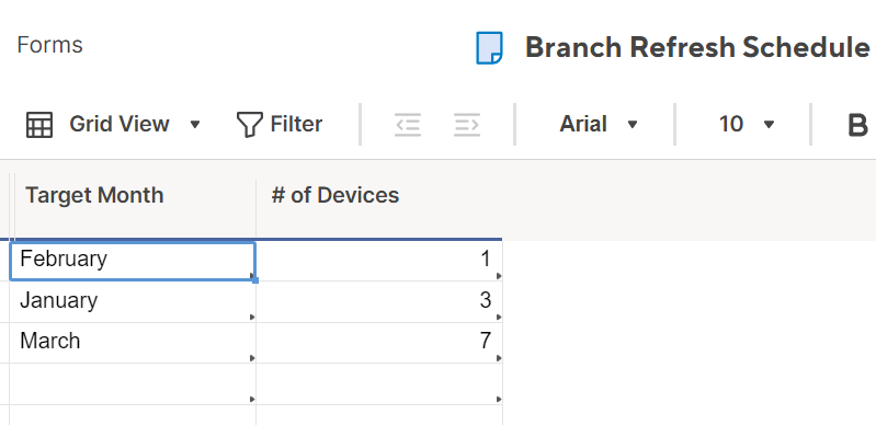 =SUMIF({Branch Refresh Schedule}[Target Month]:[Target Month], "February", [# of Devices]:[# of Devices])