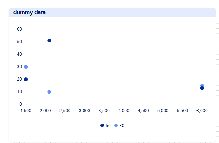 I have numerical data in one column (total score) and a single select in another columns (Level of Effort) that I would like to show on a scatter plot. I've managed to create the scatter plot below, but am stuck on the following items: