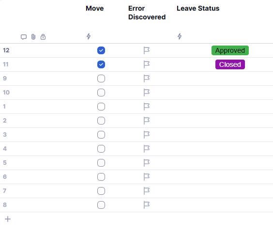 The first three columns of the workspace are not linked to any Data Shuttle data, while the remaining columns are. My initial Automations are simple “move row” actions based on Columns 1 and 3: