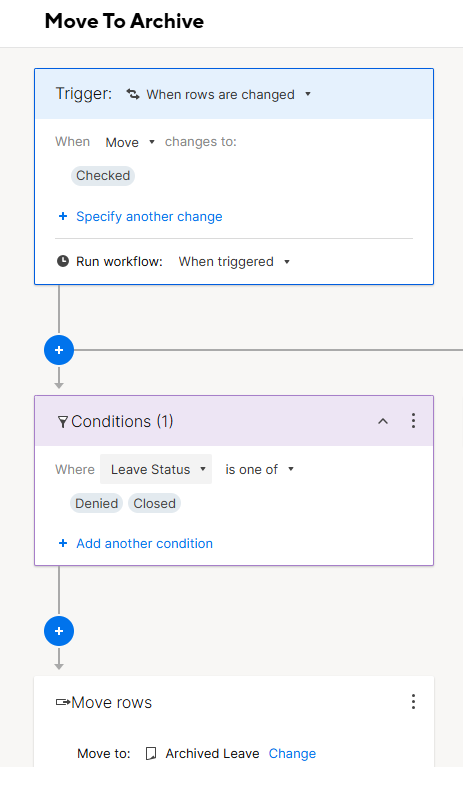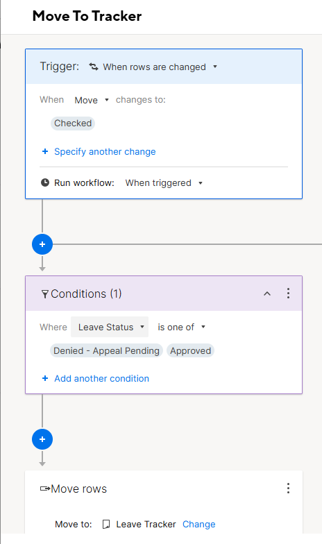 The Automations are designed to move rows to different sheets depending on the Status value, but only after the Move checkbox is checked. The issue is that these Automations don’t trigger automatically, they only run when I manually trigger them.